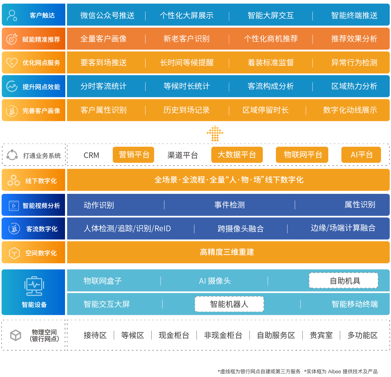 赋能银行网点实现线下数字化,连接、打通、融合银行网点各类业务数据,形成全面的智能化管理、运营和触达。
