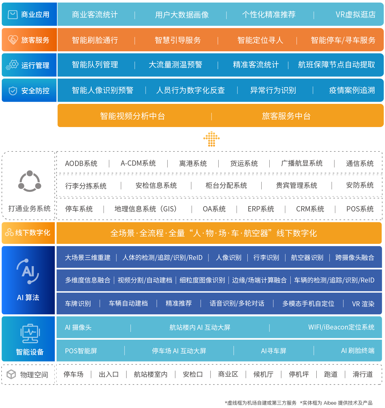 实现机场全场景、全流程、全量线下数字化,连接、打通、融合机场各类业务数据,赋能机场安全防控、运行管理、旅客服务、商业应用四大业务板块智能化升级。